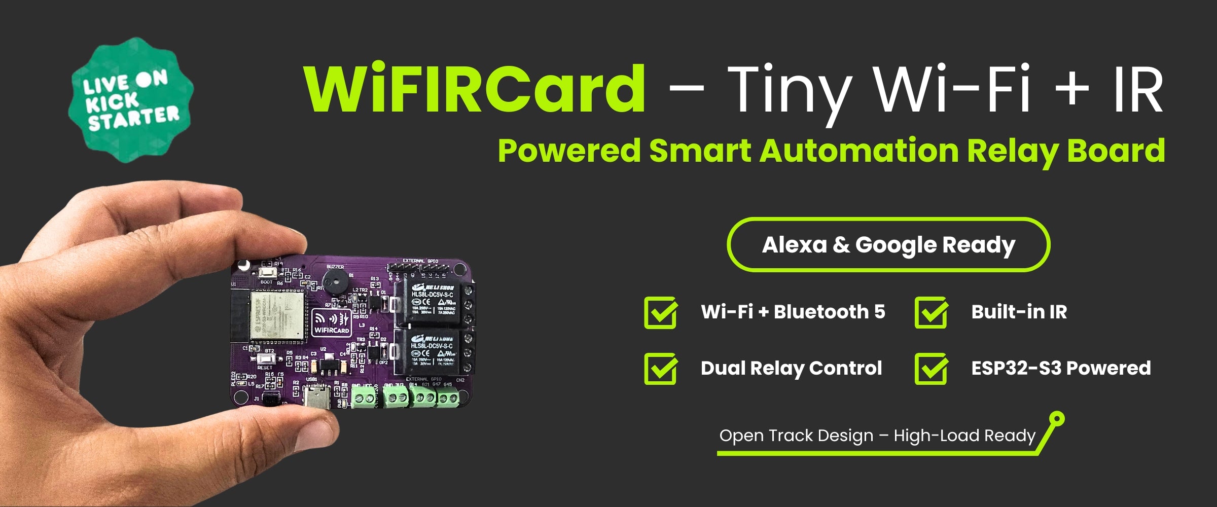 Smaller than a credit card, packed with ESP32-S3, dual relays, Wi-Fi, Bluetooth, and IR control - all-in-one automation card.