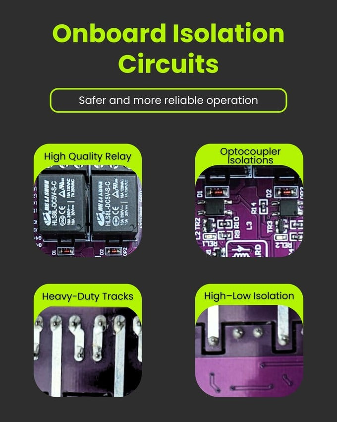The opto-isolated relay design adds an extra layer of safety, protecting both the board and your connected devices from unexpected surges or faults. Whether you’re switching household appliances or experimenting with DIY IoT projects, these protections make WiFIRCard a trusted, long-lasting, and worry-free automation companion.
